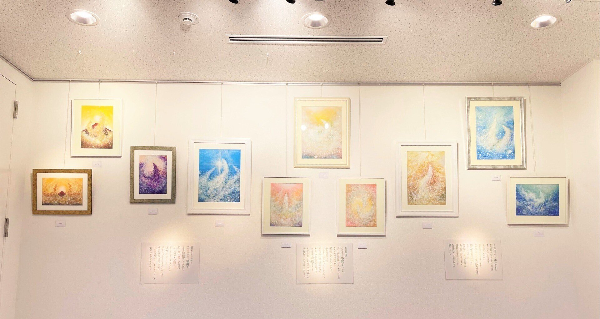 HIDEKIの表現は、アクリル画、パステル画、墨絵など直観を駆使しながらの制作で最初は着地点が見えることはありません。ある特定の「愛」の方向に意識を向けたときに、徐々にそのカタチをあらわしていくという過程を経ます。