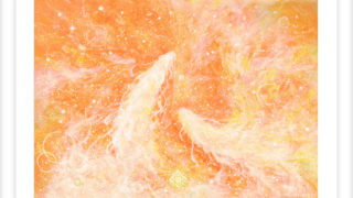 この作品は、龍神様を正面から見たような作品ですが、実は正面から龍神様を描くことができたのは、今年、2020年から。正面からの龍神様の意味としては、円のパターンの意味として龍神画の方で説明させていただいたことがあります。