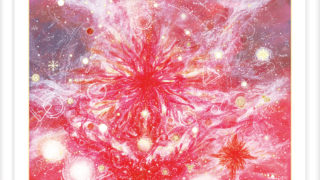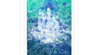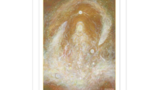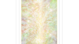 ヒカリの肖像画は、対象となる方の本質のヒカリの姿の一面として描かせていただいているものです。ヒカリの肖像画は、人の本質、ヒカリに焦点を当て、描き現していくものですが、この作品「共に在る」は、今、必要とする絵を描こうと思い描きはじめ、いつの間にか、何となく人のように見え始め、そこから人のカタチを意識し、描き進め、完成させた作品です。